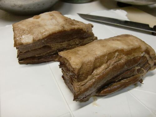 ARAPROさんのブログで拝見して美味しそうだったので、「蒸して」角煮を作ってみました。 100g78円のアメリカ産豚バラブロックですw こんな感じに。一応二時間蒸して、一時間煮て、一晩置いて、出したところです。蒸したところでかなり脂が落ちていましたの…