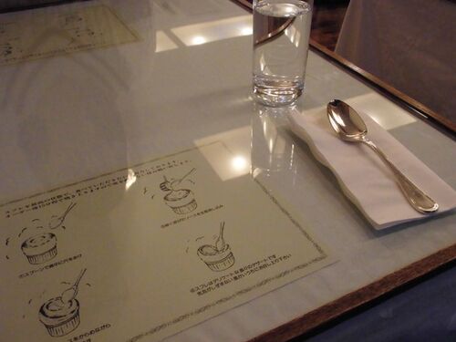 巡り巡って、広尾のル・スフレへ。 夕方でしたが、店内は3割ほどの埋まり具合。 卓上にはイラスト付きのスフレの食べ方。席を離れずにお待ちください、という注意まであります。 カフェオレ。どちらかというとラテっぽい? 注文はやはり定番のバニラのスフレ…