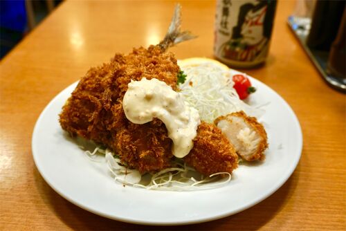 ゴールデンウィーク中ということもあってさすがの賑わいを見せる「とんかつ八千代」さん。 カウンター席が埋まっていたのでテーブルに案内されました。 煮物。 さつま揚げ、里芋、長ねぎ、こんにゃく、にんじん。 もともと鶏肉も入っていたのか、脂の旨みを…