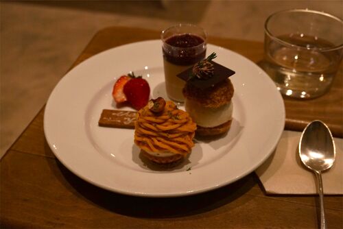 幡ヶ谷の季節のアイスとナチュラルワインのお店「kasiki」さんが2周年ということで、記念デザートプレートを出されていたので食べに行くことに。 2周年記念デザートプレート。 小振りながら1品1品見るからに作り込まれたお菓子が盛り合わせられています。 栗…